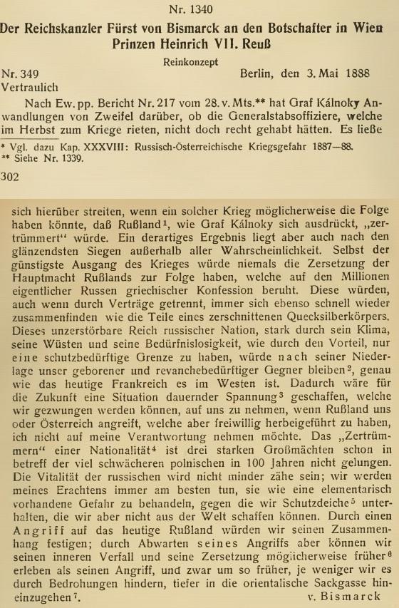 Райхсканцлер князь фон Бисмарк послу в Вене.