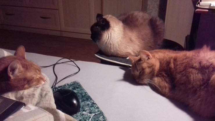 уложила внукоф спать и сама упала с котами (они тоже все в мыле))))в кровать...