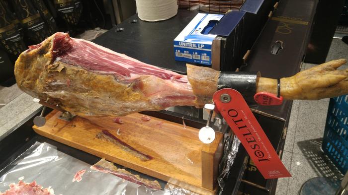 вот висит нога в полиэтилене-стоит 1 шт=26 евро за 3,5-4 килограмма