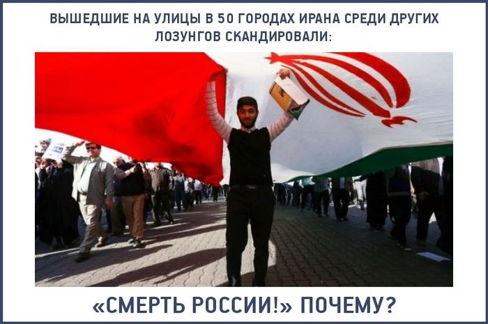И дело здесь не в русофобии иранцев. Просто для вышедших на улицы демонстрантов Россия — главный союзник ненавистного клерикального режима аятолл. Россия ведет войну в Сирии вместе с Ираном, Россия снабжает ядерными и ракетными технологиями Иран. Россия поддерживает антизападную позицию Ирана. Из Сирии в Иран идет нескончаемый поток гробов, и трудно понять демонстрантам, что кремлевский режим, который делает всё это — одно, а Россия — иное. Что в России также есть немало людей, желающих восстановления демократии, прекращения внешней агрессии, желающих сближения со странами Запада. И если иранские демонстранты выходят с лозунгами «Не Газа, не Сирия, не Ливан — наша страна Иран!», то у нас выходят под лозунгами — «Руки прочь от Украины», «Прекратить помощь режиму Асада!».