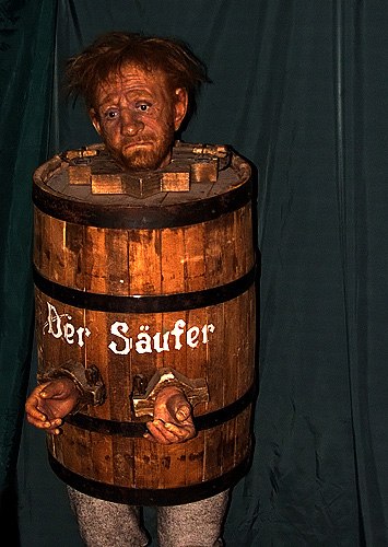 Любой посетитель может примерить деревянный макинтошик пьяницы на себя.