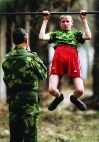 Рота почетного караула устраивает показательные выступления. Бойцы разведроты демонстрируют приемы рукопашного боя.