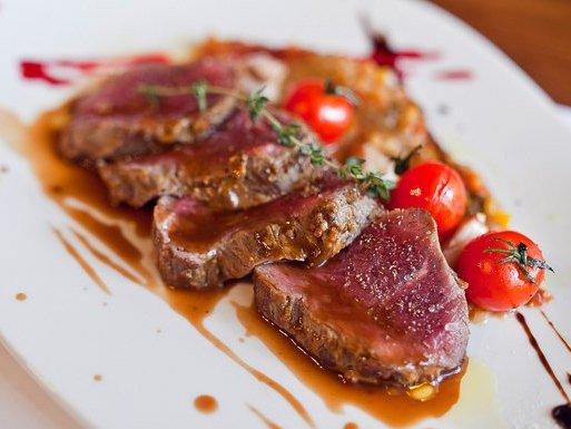 Ростбиф – блюдо английское, жареная говядина, как ясно из названия. Это говяжье филе разной степени прожарки, в данном случае- «с кровью» , разрезанное обязательно поперек волокон.