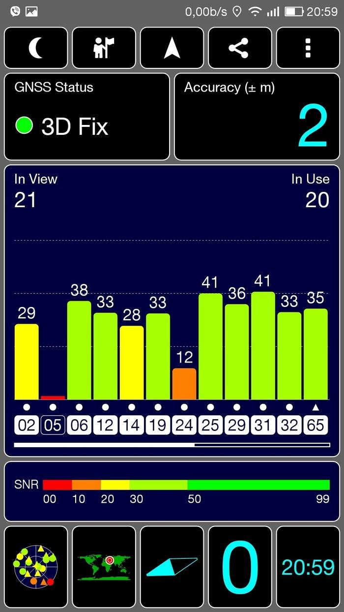 И спутников много. Вот, например, я вышел на балкон со смартфоном и он видит 20 спутников! Это позволяет очень точно определять координаты.