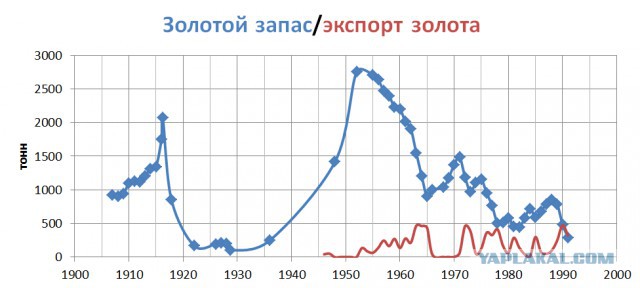 6) деньги монетизированы в золотые слитки, поделены и лежат в кубышках, .отчитались на сколько вырос золотой запас России.