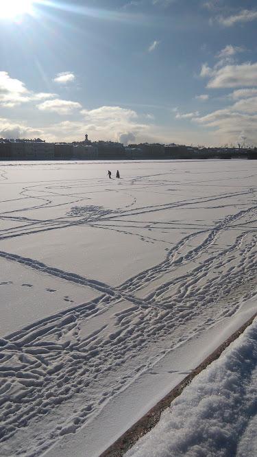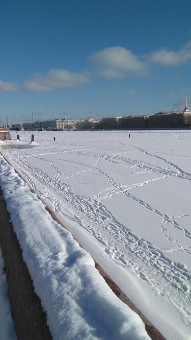 Снега почти нет, но лёд, говорят, больше метра толщиной..)