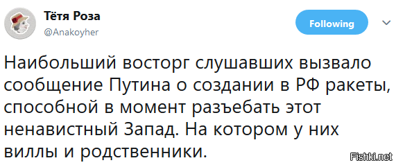 Под угрозы Путина, что Западу следует одуматься, все стали ждать кадра со спящим Медведевым, фантазируя, что именно у него в руках — плюшевый мишка, зайчик или жёлтая уточка.
