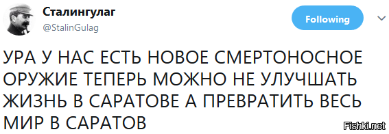 В своём послании, Путин применил новый метод, навешивания лапши на уши. Он уже не обещает обещать, так же напористо, как в прошлые годы - он начал пугать запад "новейшим оружием", а нищему населению внушать: какие мы "крутые" - ага, без штанов, но в галстуке.