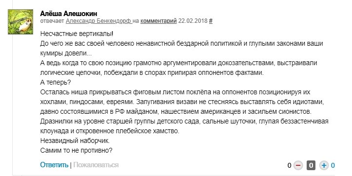 «Он бы про мирные успехи что-нибудь заявил. Когда авиасообщение вернется ХОТЯ БЫ на уровень СССР. Или когда все ж/д пути электрифицируют».