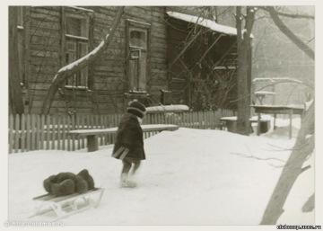 А если сильный ветер, то можно распахнуть пальто и как под парусом. Кстати, большинство детей в то время ходили в пальто. Некоторые девочки - в шубках. Курток зимних не делали.
