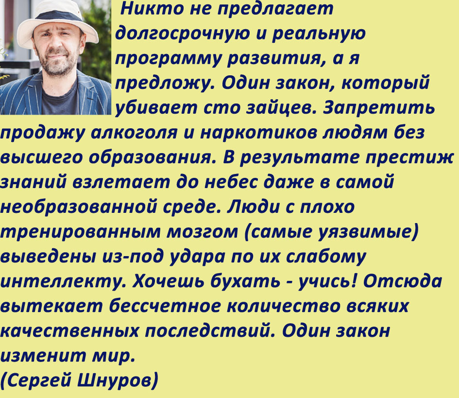 Пусть слегка на другую тему, но весьма интересное предложение выдвинул Сергей Шнуров: