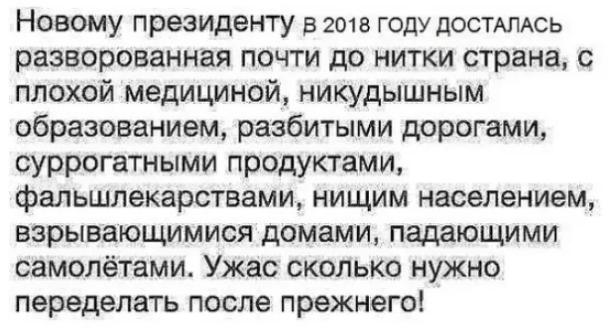 А в 2004 и 2018 он возрождает страну после разрухи от президента Путина.