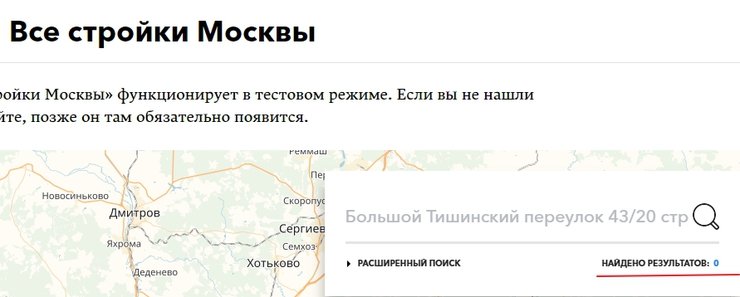 На сайте компании говорится, что квартиры продаются в доме в Большом Тишинском переулке, 45. На карте адресной инвестиционной программы он относится к адресу Большой Тишинский переулок 43/20 строение 3.
