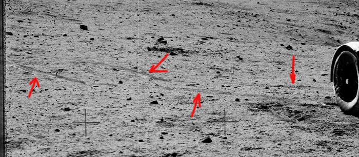 Сразу предупреждаю - ровер достаточно тяжелый, чтобы оставлять не менее четкие следы, чем ноги астронавтов, и полно других фоток, где следы от колёс есть. Так и...