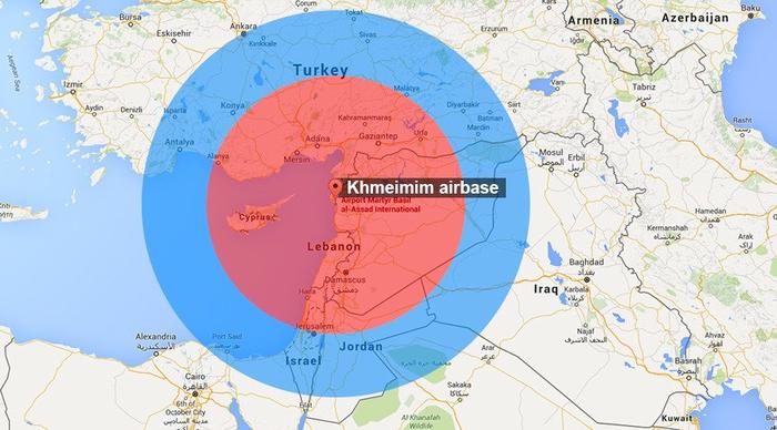 Карта подчеркивает масштаб конверта угрозы, представленного одной батареей #S400 с точки зрения ее географического охвата