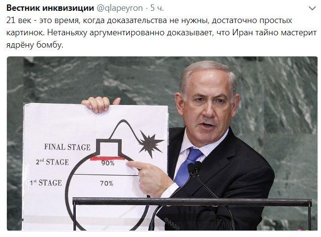 Всё это происходит на фоне эскалации военного и политического противостояния с Ираном. Напомним, что вчера премьер Израиля Нетаньяху обвинил Тегеран в тайном создании ядерного оружия, пообещав скорую реакцию Трампа.