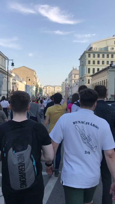 В Москве толпа снова идет по проезжей части Малой Дмитровки, передает корреспондент Дождя. Вот видео оттуда — скандируют «Долой полицейское государство»: