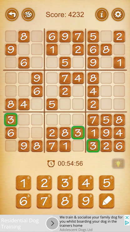 при этом каждая из девяти строчек, каждый из 9 столбиков, каждый из 9 квадратов 3х3 должны содержать все цифры от 1 до 9, и чтоб они не повторялись. поэтому анализируешь, какие цифры уже есть, каких недостает, и смотришь куда их поставить, чтобы не нарушить правила и всё сошлось.)