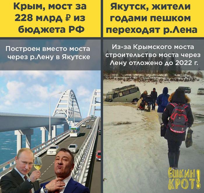 Причем кремлевской «стройкой века» прикрываются руководители регионов, далеких от Крыма. Нехватку средств на строительство и ремонт дорог в Сибири местное начальство объяснило возросшими тратами на «сакральный» полуостров.