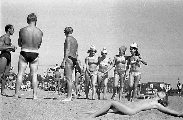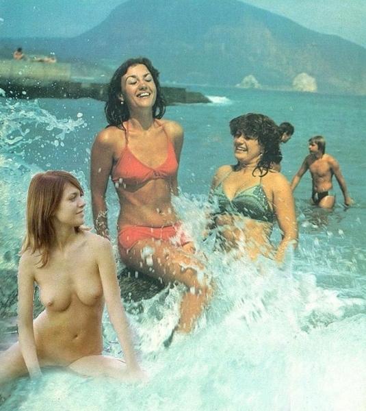 Девушки на пляже в Павловской роще. СССР, Ярославль, 1970-е годы.