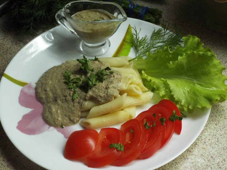 А вот и подливка! Пока соорудил с пастой - рано ещё для барбекю!