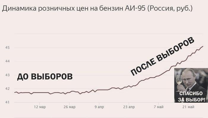 По оценкам Росстата, потребительские цены на бензин в России повысились в мае 2018 года на 5,6% относительно предыдущего месяца. В годовом сопоставлении бензин в России подорожал в мае на 11,3%, а за первые 5 месяцев ткущего года — на 7,2% (к декабрю-2017).