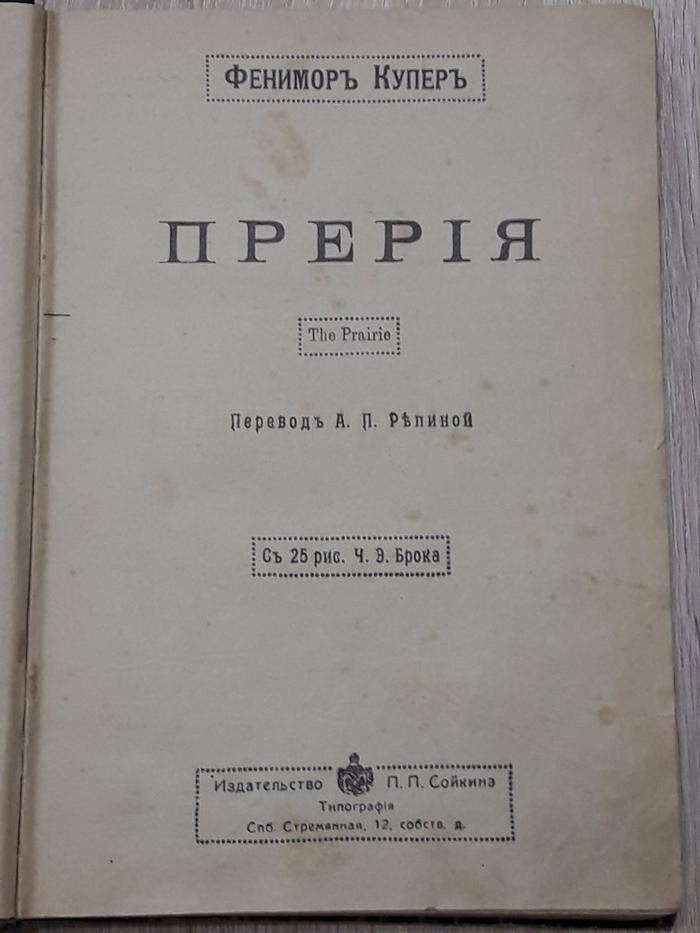 Книга издана в 1913 году в Санкт-Петербурге в типографии П. П. Сойкина. Отдельная книга из серии романов Д. Ф. Купера. Издательский переплёт, коленкоровый корешок, переплётные крышки оформлены мраморной бумагой. 448 страниц. Книжный блок в идеальном состоянии, несколько потёрт переплёт.