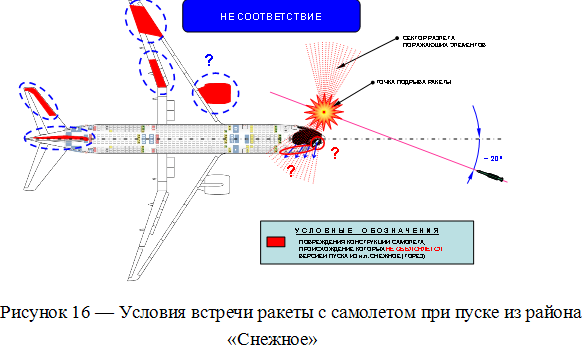 Взаимное расположение ракеты и самолета в момент подрыва установлено голландскими следователями с точностью 10-15 см и хорошо согласуется с результатами натурного эксперимента, проведенного в НПО "Алмаз-Антей"