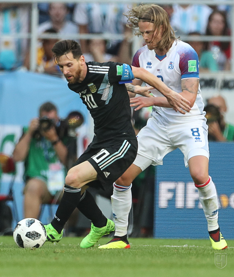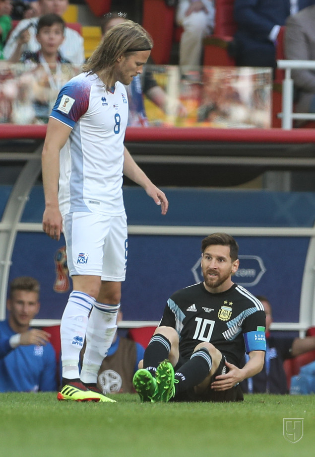Лионель Месси и Биркир Бьярнасон пожали руки.