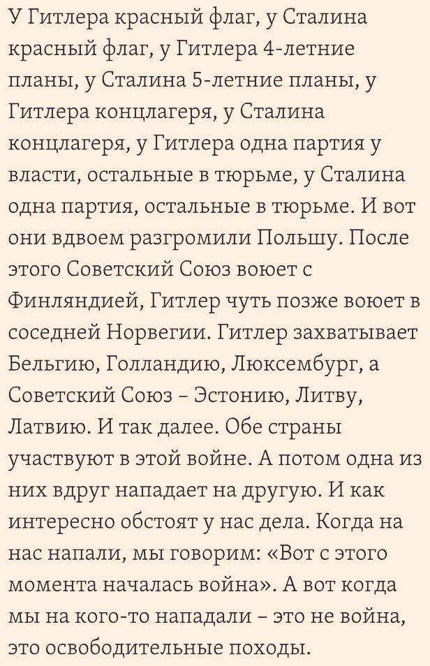 4) Ввод наших войск в Польшу в 1939 году абсолютно справедливо называется "освободительным походом", потому что 20 лет назад эта "гиена Европы" (Черчилль) напала на нашу страну, охваченную гражданской войной, отхватив от нее Восточную Украину и Восточную Белоруссию. Вот и мы, воспользовавшись удобн...