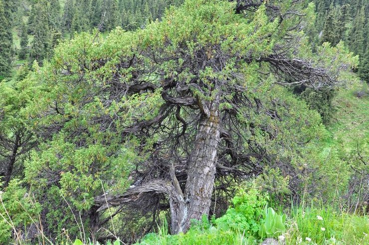 Можжевельник ложноказацкий возрастом 450 лет (?) – возможно, старейшее дерево Заилийского Алатау. Фото автора