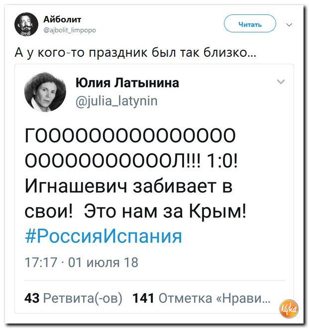 Jj mr: - Это не Россия выиграла, а Испания проиграла. Позорное и заслуженное поражение. Выставили нас посмешищем на весь мир. Страна с лучшей лигой мира (и с худшим распределением ТВ доходов) собрала ужасную сборную.