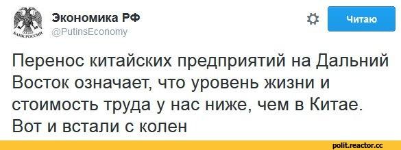 И вот, чтобы окончательно закрепить права китайских инвесторов на территории нашей страны, был подписан закон о «ТОРах» — этот закон практически полностью безвозмездно передает «депрессивные» районы Сибири и Дальнего Востока КНР. Закон уже работает! Что такое депрессивные районы? Это регионы, где большая безработица, нет предприятий и вообще люди живут плохо. А теперь стоп! Все регионы Сибири и Дальнего Востока – бедные. После развала Советского союза все предприятия убили, колхозы развалились и до сих пор люди живут в ужасных условиях. Я сам родился и вырос на Алтае и знаю, о чем говорю! Если крупные города еще более или менее выживают, то поселки, села и деревни – в очень плачевном состоянии. Ну и конечно, зачем же самим поднимать свой народ, вкладывать в него деньги и время: лучше отдать китайцам и получить от них политическую поддержку на мировой арене!