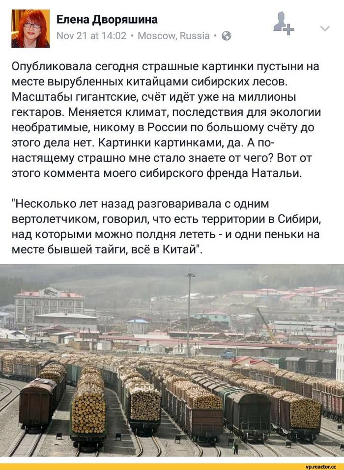 Давайте по порядку! Я сначала коснусь проблему масштабных вырубок лесов, нашего величайшего природного достояния. На официальном уровне, в рамках экономического сотрудничества, Россия передала Китаю миллионы гектар леса. Причем давно, уже вырубили столько, что без проблем, любой желающий, может увидеть вырубки на яндекс или google картах: вид со спутника открывает ужасную картину. Это для скептиков, всех тех, кто до последнего верит в фразы: «это все проделки Запада». Нет, друзья мои, вся ситуация реальна! На фоне официальной передачи лесов Китаю, местные власти (и лица любым способом связанные с ней), под общую шумиху, принялись на полулегальных основаниях вырубать ценные леса (реликтовые и заповедники) для китайских предприятий! Лес проводят как сгоревший, больной или просто напрямую сгоняют технику и вырубают все, что только можно. Люди стали подниматься, выходить на улицы, но после того, как на них посыпались угрозы и некоторым активистам сожгли дома, все затихли. Причем затихли конкретно! И я их понимаю. Сибирь и Дальний Восток крайне бедные регионы и свой дом да хозяйство, это все, что есть у местных жителей. Потерять хозяйство – значит остаться на улице. Следом забрать могут только жизнь. Ребята считали, только через г. Иркутск ежедневно проходит свыше 400 вагонов кругляка (древесина), а это огромные цифры. Ездили на границу РФ и КНР, на 1 квадратный км 4 деревообрабатывающих предприятия. Без остановки на конвейер поступает древесина, ее перерабатывают. И вот, Китай стал номер один экспортером изделий из дерева в Америку и другие страны! Поражает, не так ли? По сути, Сибирь и Дальний Восток в прямом смысле слова стали сырьевым придатком КНР. Вокруг Байкала вырубили весь лес, Иркутская область, Забайкалье, Амурская область, Дальний Восток – проблема глобальная. Такими темпами лесов скоро вообще не останется, как нет их сейчас в самом Китае. У себя они вырубили все, такая же судьба ждет и нашу природу. И это та земля, которую мы оставим своим детям.