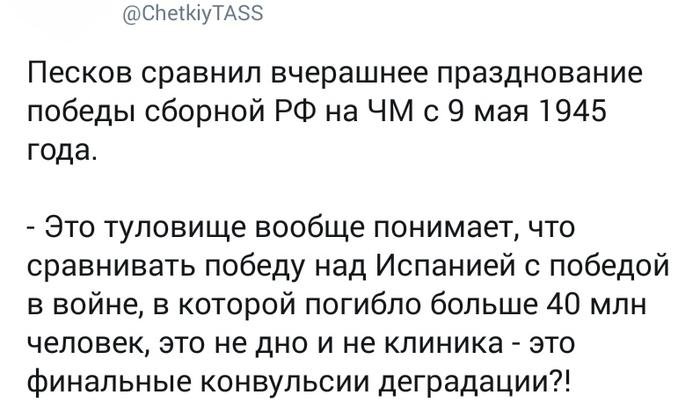 Начнем с того, что Путина с этой победой поздравил король Испании. Но, Путин позвонил ему сам, сразу после матча. Он отметил высокий уровень игры красно-желтых, но отметил, что в этот раз стратегия российского тренера оказалась вернее. В свою очередь Филипп VI поздравил Путина с победой и выходом сборной в 1/4 финала.