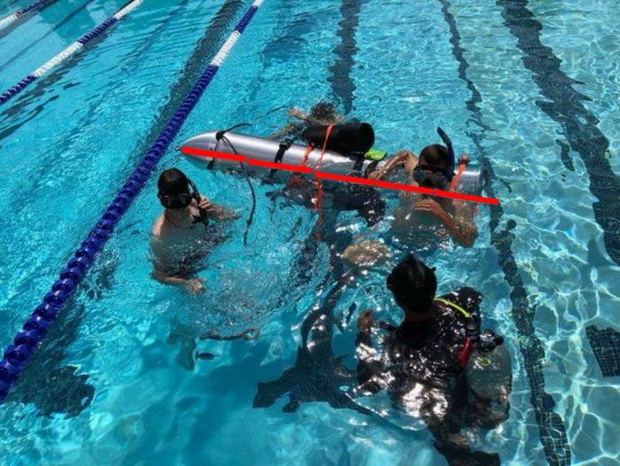 И глазомер у вас ни к черту. Капсула в бассейне как раз примерно со стандартный 40-литровый баллон.