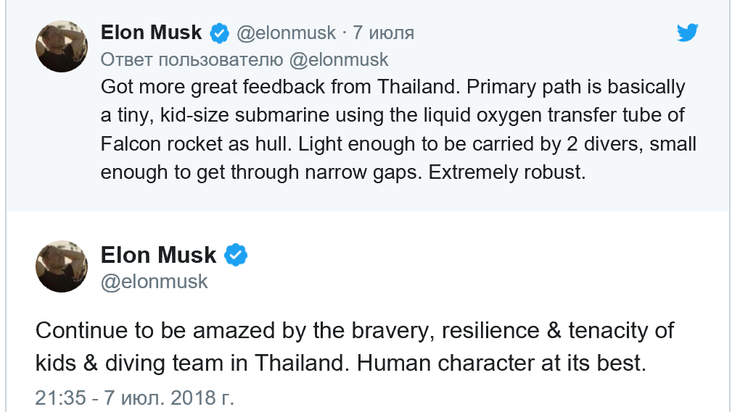 – Правительство и команда профессиональных дайверов уже спасли 4 ребенка. Но конечно же, продолжай убеждать, что ты что то делаешь в твиттере! Будь скромнее!