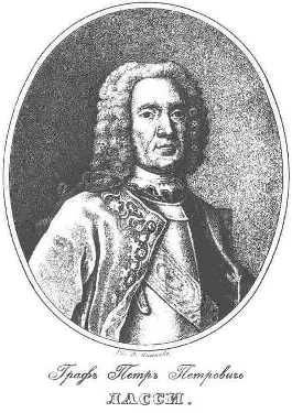 Ласси, Петр Петрович (1678-1751), — граф, генерал-фельдмаршал уроженец Ирландии. В 1700 г. перешел на русскую службу. Принимал участие в Северной войне (1700 — 1721 гг.), боевых действиях русской армии в Польше (1733 г.) на стороне короля Августа III против Станислава Лещинского. С 1723 по 1725 гг. он состоял членом военной коллегии, позже — рижским генерал-губернатором. Произведенный в генерал-фельдмаршалы, участвовал в турецкой войне 1736-1739 гг., почти всегда начальствуя отдельным корпусом. В 1740 г. за ним утвержден графский титул, пожалованный ему императором Карлом VI. В шведскую войну 1741-43 гг. был главнокомандующим русской армии.
