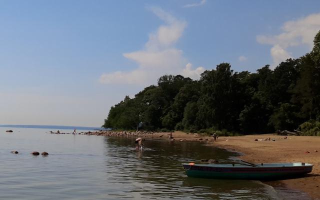 Купаемся, конечно. Это озеро. Вчера ездили, хорошо так посидели, поплавали, цветов набрали...