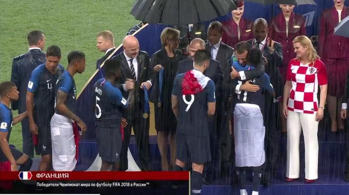 Довольно многие (и я в том числе) сделали скриншоты с телевизора, когда на церемонии награждения победителей ЧМ радушный хозяин В.В.Путин стоял, улыбаясь, под зонтиком в уютном одиночестве среди мокрых гостей. Когда же эти скриншоты появились в социальных сетях, реакция недовольных такими публикациями была крайне бурной.