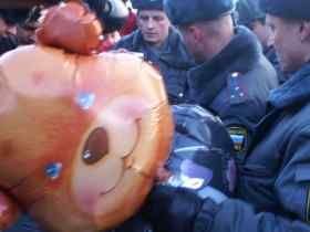 В Москве возле станции метро "Китай-город" во время акции защитников Химкинского леса активистов задержали за то, что они надували воздушный шар в виде медведя. Об этом 22 декабря сообщил с места событий корреспондент Каспарова.Ru.