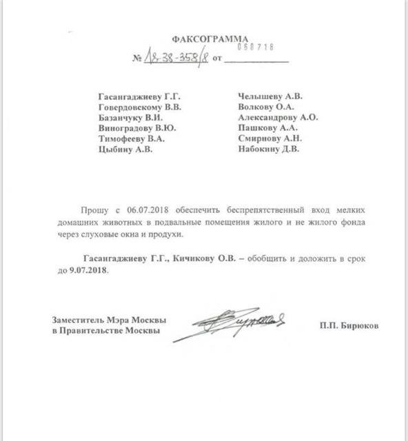 там потом просят чтобы и в Подмосковье такое распоряжение вышло