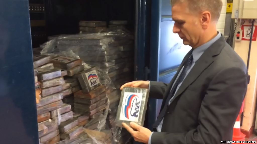В порту города Гент полиция перехватила 2 тонны кокаина, упакованного в килограммовые брикеты с логотипом "Единой России"