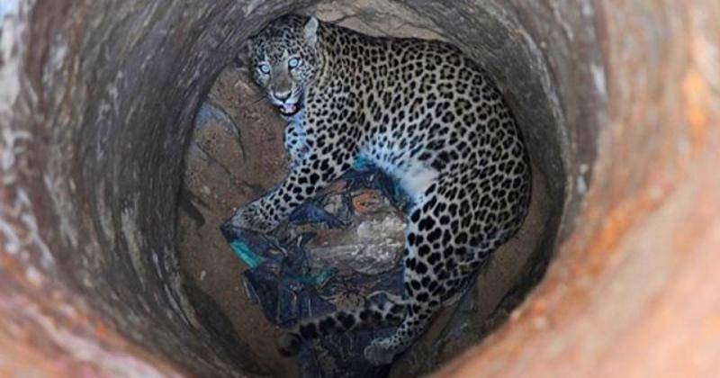 Леопард упал в пересохший колодец. Но самое интересное — как его оттуда доставали