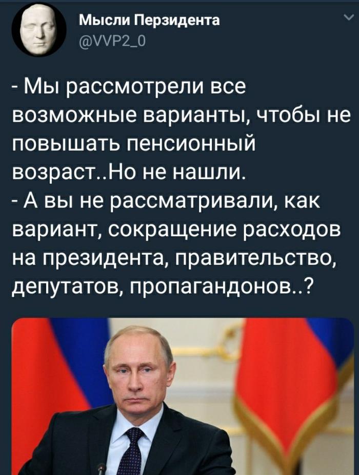 Вроде все хорошо, но за Державу обидно: поскольку порядка двух-трех процентов абрамовичей, вексельбергов, тимченко да ралдугиных - плевать хотели на пенсию, хотя будут её получать; около 10% имеют так сказать специальные пенсии - такие как Президент, депутаты да судьи и им до лампочки эта реформа, еще с десяток процентов за счет полных военных и приравненных пенсий, или получившие комплект из военной социальной (трудовой), а также корпоративной пенсии - тоже хватит на хлеб с маслом. Остальные же семьдесят процентов, извините но в одном темном месте.