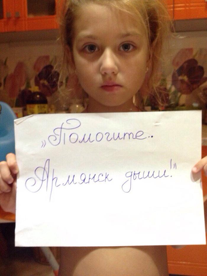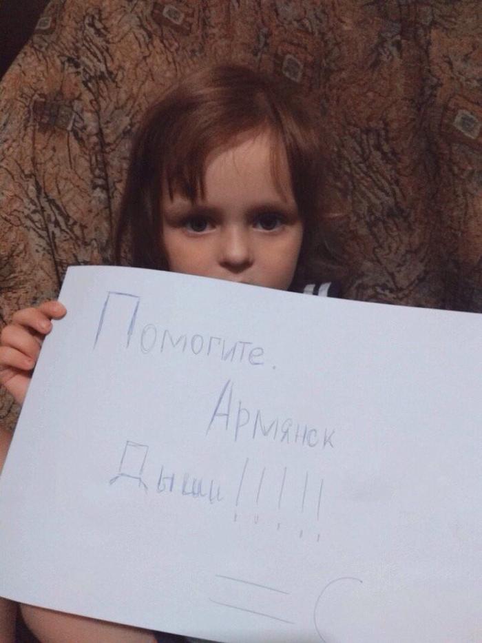 Крым. Жители Армянска начали фотографировать своих детей, которые держат в руках плакаты с надписями: "Помогите. Армянск, дыши!", "Армянск, живи!". До оккупации о такой форме привлечения внимания к проблемам мы и мечтать не могли. Да и проблем таких никогда не было!