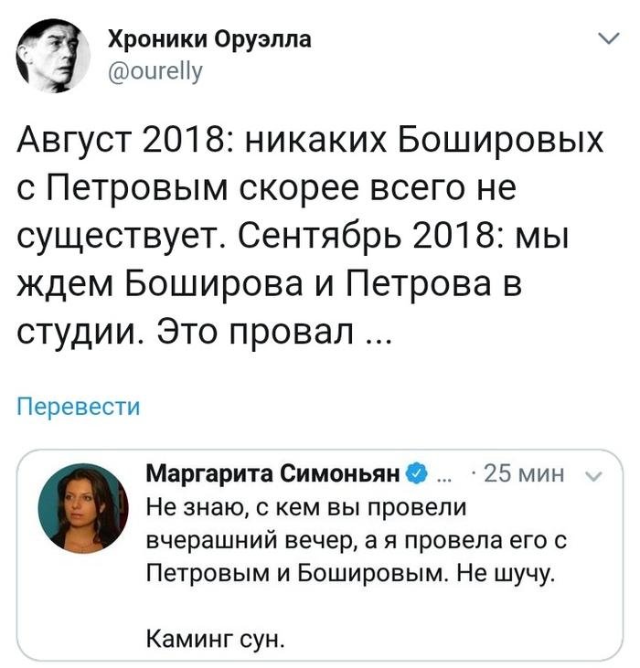 13 сентября Петров и Боширов дали максимально странное интервью главреду RT Маргарите Симоньян, которое породило массу шуток.