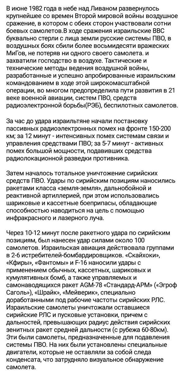 Кстати, если Израиль летает в Сирии, как у себя дома, и стреляет по Сирии с большого расстояния, то логично бить по израильским самолётам и над Ливаном и над Израилем.