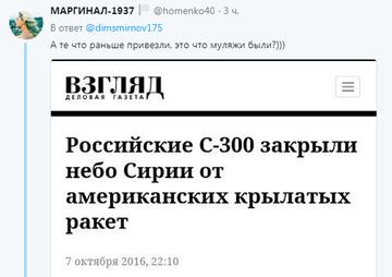 Собственно говоря, что проигрывают сирийцы даже при неудаче боевого применения российских комплексов ? - евреи и сейчас летают, ну, в любом случае, им станет летать потрудней.
