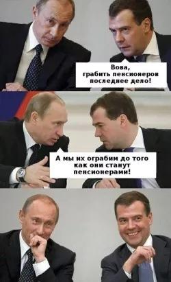 — Сначала отняли у старших поколений накопительную пенсию (ее позволительно иметь теперь только людям моложе 1967 г.р.). Никто ничего не заметил и не понял. Проехали — забыли.